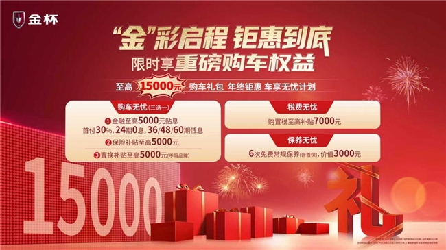沈阳金杯始终秉承“品质铸金杯”的品牌精神,通过“购车减免+税费补贴+保养服务”的全方位保障体系,体现对用户从购车到用车全生命周期的深度关怀。这一系列优惠政策的落地,不仅是金杯回馈用户的重要举措,更彰显了品牌作为用户可靠创富伙伴的责任担当。