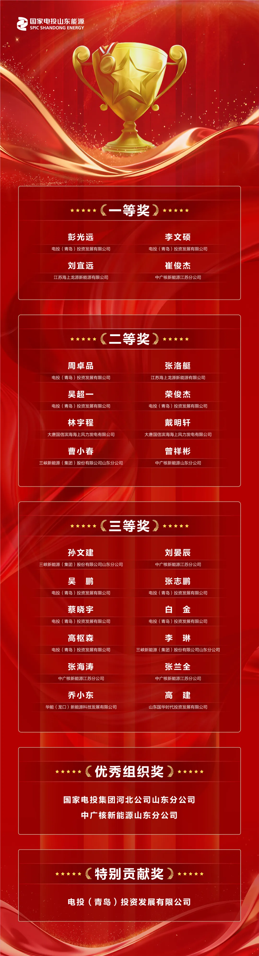 国家电投河北公司和中广核山东公司获得优秀组织奖,国家电投山东能源所属海上风电公司获得特别贡献奖。