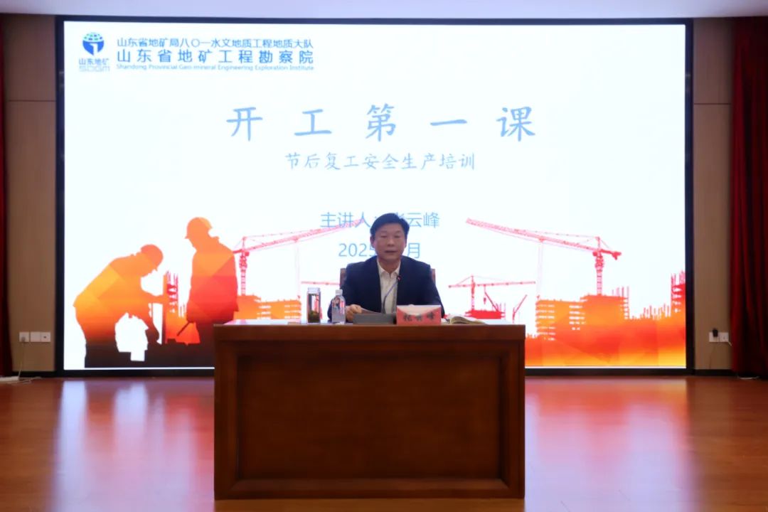 为扎实做好春节后复工复产,切实提升全体干部职工安全意识,帮助大家迅速进入工作状态,2月6日,山东省地矿工程勘察院举办安全生产“开工第一课”专题培训。院党委书记、院长张云峰出席并讲话,党委委员、副院长王敬主持。