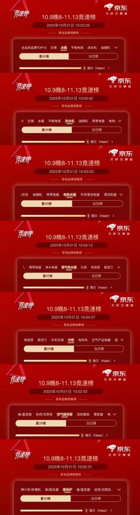 10月30日晚8点,京东双11迎来新一波高潮。在这场用户集中下单、品牌最热角逐的关键阶段,谁最终赢得了用户青睐?在京东家电竞速榜,海尔冰箱、洗衣机、热水器、冷柜等多品类榜单登顶TOP1(数据来源:京东平台竞速榜10月9日20:00-10月31日10:04:27)。成绩的背后,再次印证了海尔智家领跑双11的根本逻辑——从用户需求中出发,创更高用户价值,收获行业首选。