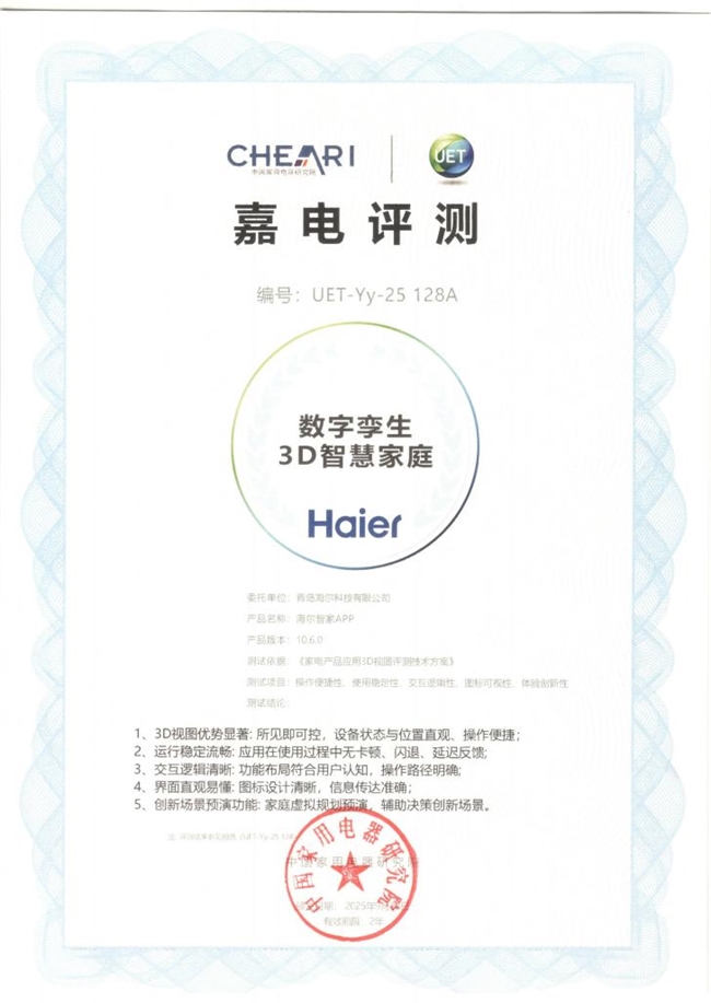海尔智家APP通过此次升级,不仅解决了多APP切换的行业痛点,更以3D智慧家庭视图功能重新定义了智慧家庭的操作逻辑。家电院的权威认证,既是对海尔技术创新实力的肯定,也彰显了其在智慧家庭领域的引领地位。 |