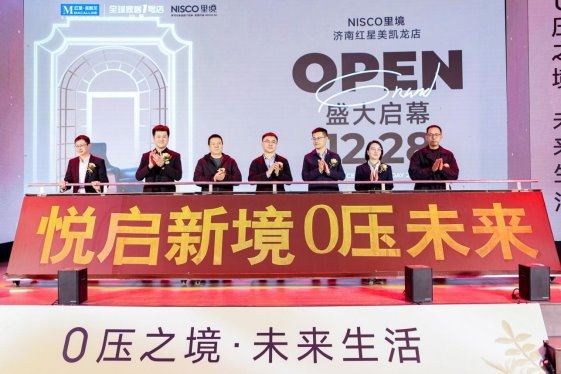 12月28日,红星美凯龙山东全球家居1号店内华彩绽放,梦百合家居旗下设计型整体家居品牌——NISCO里境济南旗舰店隆重开业。红星美凯龙济南区域管理中心兼山东全球家居1号店总经理李齐胜先生、红星美凯龙 M+高端设计中心主理人陈燕女士、山东全球家居1号店高级经理单志昂先生、山东全球家居1号店高级经理李欣雨先生、梦百合家居副总裁刘志刚先生、里境家居济南运营总监漆博先生、里境家居首席产品设计总监何隽先生参加本次开业仪式,共同见证这一融合匠心、设计与舒适科技的家居新势力正式登陆泉城。