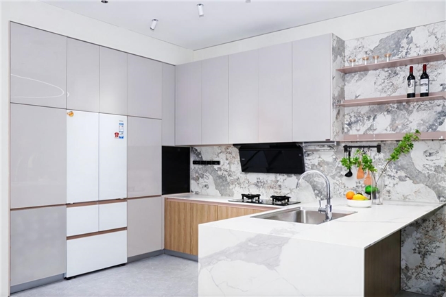 此次展会,三翼鸟为AI时代的理想家带来了具象化展示——真正的智慧生活无需多说、不必多做,就能享受更省心、便捷的主动服务。走进展区,在智慧玄关回家开门,智能门锁能精准判断家庭成员,并联动带来专属的回家灯光和音乐;在智慧客厅,智家大脑屏不仅能轻松掌控全屋设备,还能自定义场景,比如说一句“来客人了”,电视瞬间切换至动态艺术画廊,灯带随音乐节奏缓慢变色。而在智慧厨房,冰箱与橱柜之间无缝嵌合,做饭打开燃气灶烟机自动开启,做完饭时关闭烟机灶具,餐厅吊灯自动打开,轻音乐缓缓响起,浪漫就餐氛围随之而来。现场赵先生体验后表示:“这种不用自己动手动嘴的体验,真的是太方便了。”